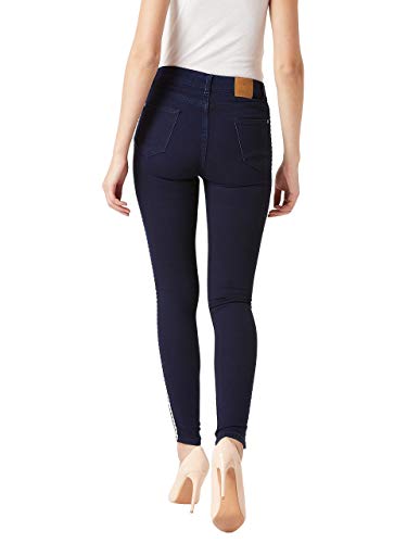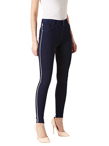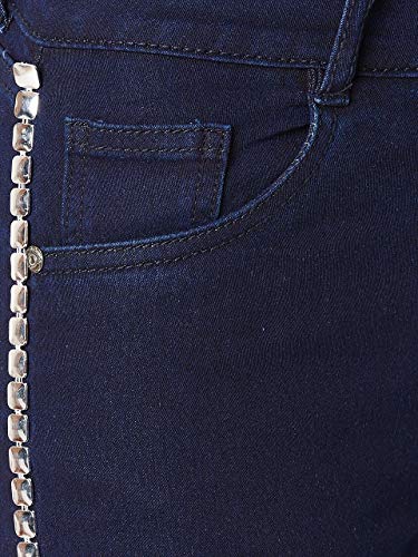 Miss Chase Women's Slim Fit Mid Rise Twill Tape Detailing Clean Look Acid Wash Crop Length Stretchable Denim Jeans