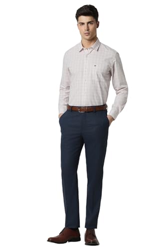 Park Avenue Men's Poly Rayon Blend Checks Pattern Smart Fit Flat Front Formal Trouser
