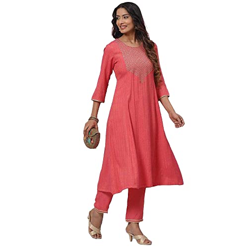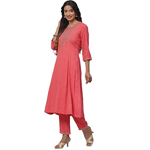 Janasya Women's Orange Cotton Kurta with Pant and Dupatta
