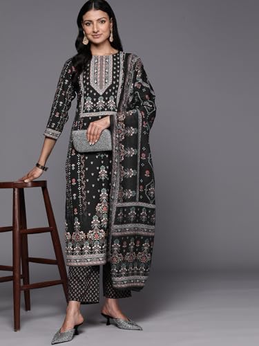 Libas Sea Green Printed Poly Crepe Straight Kurta With Trousers & Dupatta