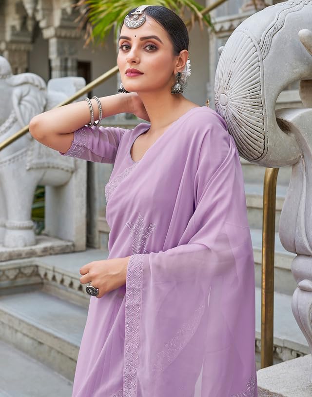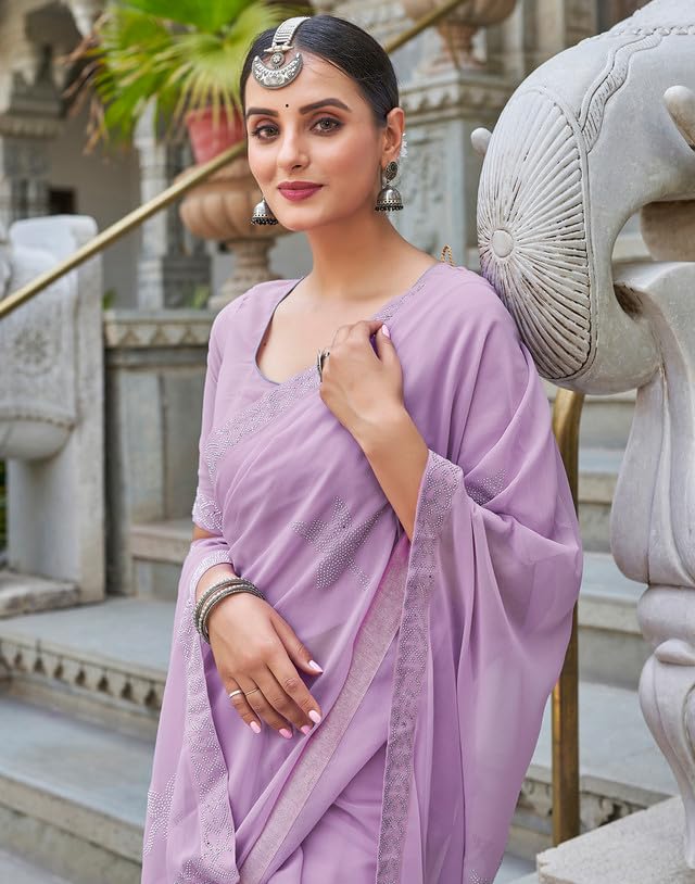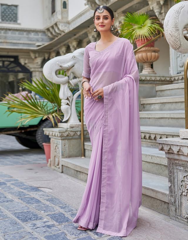 SIRIL Women's Organza Jacquard Woven Zari Stripe Saree With Unstitched Blouse Piece