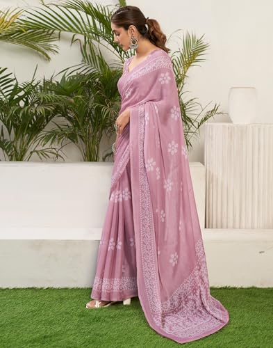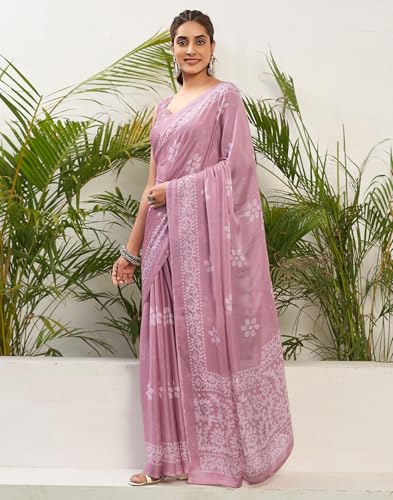 SIRIL Women's Chiffon Bandhani Printed Saree With Unstiched Blouse Piece