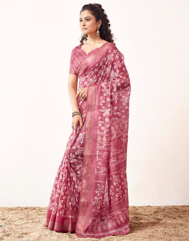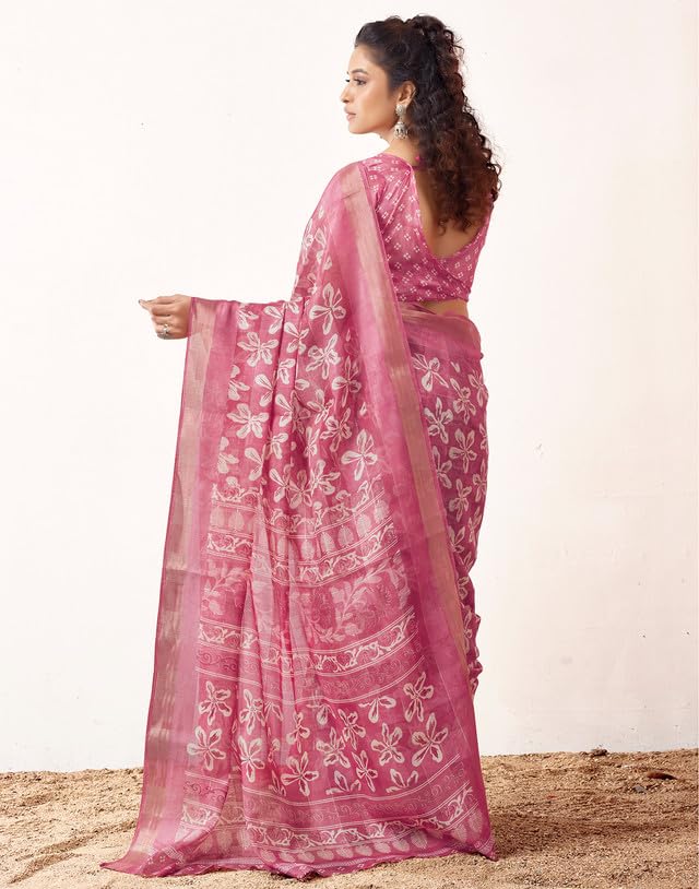 Womanista Women Cream solid georgette saree with embroidered blouse & belt