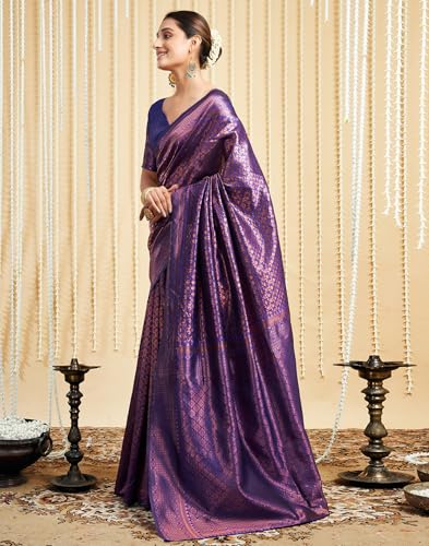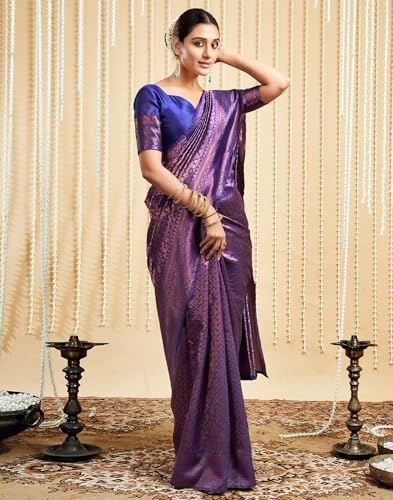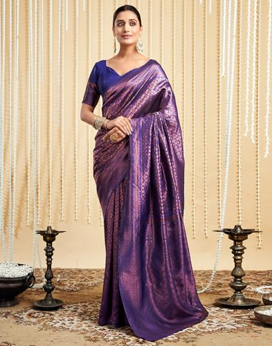SIRIL Women's Chanderi Printed Zari Stripe Ready To Wear Saree With Unstitched Blouse Piece