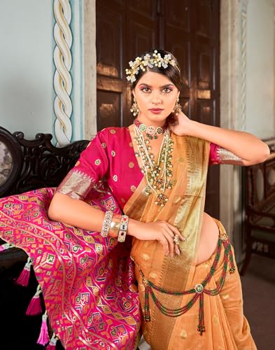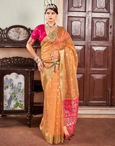 SIRIL Women's Banarasi Saree | Silk Blend Kanjeevaram Jacquard Saree With Unstitched Blouse Piece