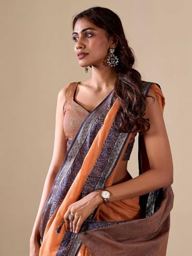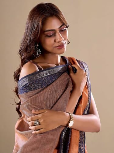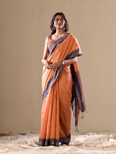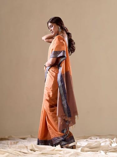 Sidhidata Women's Temple Border Kota Doria Cotton Manipuri Saree With Unstiched Blouse Piece