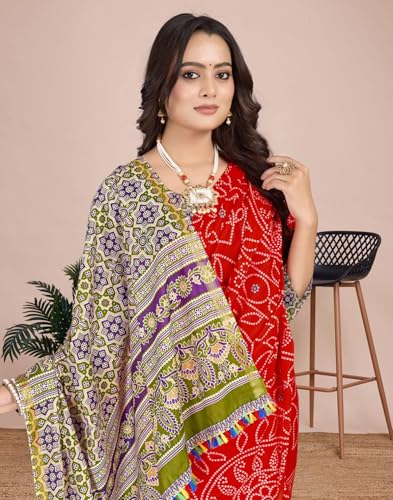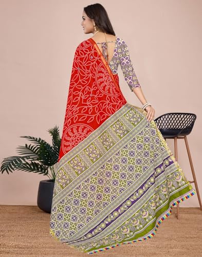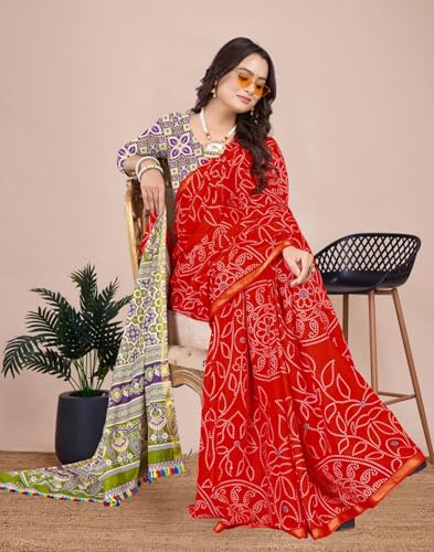 SIRIL Women's Georgette Laheriya Printed Embroidery Lace Boarder Saree With Unstitched Blouse Piece