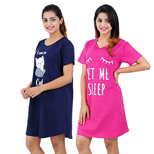DZZO Cotton Night Suit for Women Girls | Women's Cotton Printed Night Suit Set of Shirt & Pyjama, Night wear Dress, Relaxed wear for Women Girls