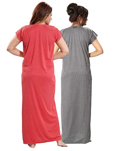BLAZON Women's Cotton Nighty Slip - Set of 2 (Baby Pink & Black)