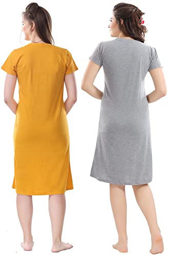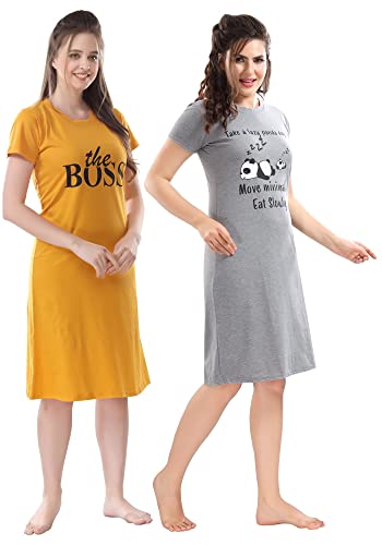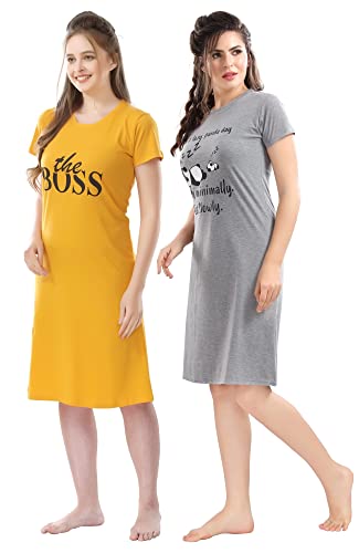 Fflirtygo Women's Cotton Printed Midi Short Nightdress