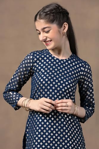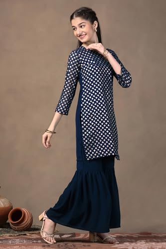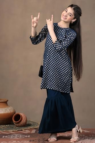 Aarika Girls Ethnic Wear Blue Colour Floral Print With Gota Lace Cotton Kurti Patiala Set