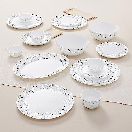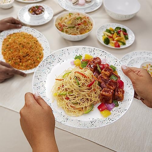 La Opala Diva Classique Collection Opal Glass Crockery | for Family of 8 | Dinner Set 61 pcs Yellow Daisy | Plates & Bowls for Dining | Microwave Safe | 100% Vegetarian | Extra Strong | White