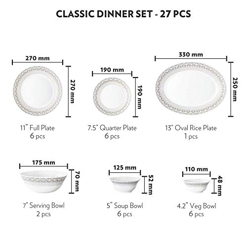 Larah by BOROSIL Glass Dinner Set - 35 Pieces, White + Larah by Borosil Red Lily Opalware Mug Set, 6-Pieces, White