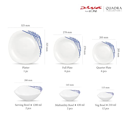 Larah by Borosil Crescent Fluted Series Opalware Dinner Set | 19 Pieces for Family of 6 | Microwave & Dishwasher Safe | Bone-Ash Free | Crockery Set for Dining & Gifting | Plates & Bowls | White