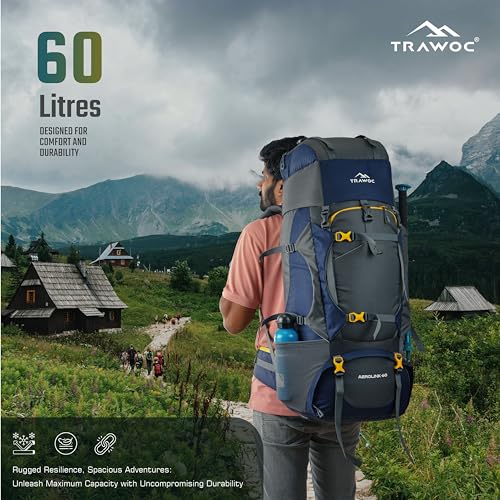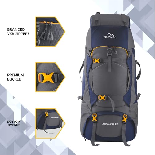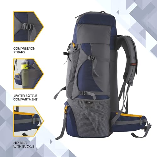 Tripole Walker 65 Litres Rucksack with 20 Litre Foldable Day Pack | Internal Frame with Metal Rod | Rain Cover | Bottom Opening | Laptop Section (Sea Green)