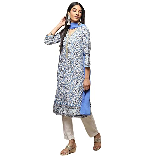 Janasya Women Anarkali Kurta with Pant & Dupatta Set