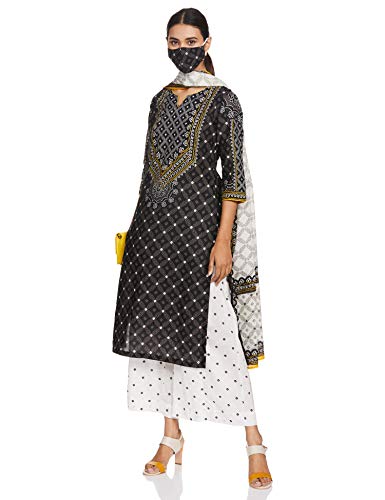 Libas Grey Yoke Design Rayon A-Line Kurta With Trousers & Dupatta
