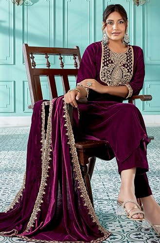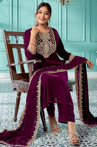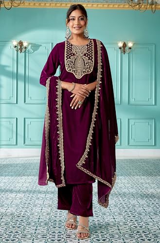BIBA Women's Cotton Blend Salwar Kurta Pant with Dupatta