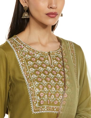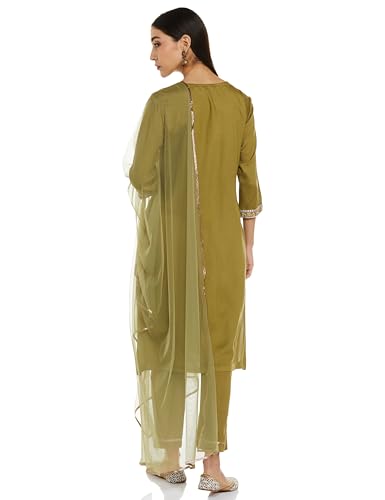 Libas Green Printed Silk Blend Kaftan Kurta With Trousers