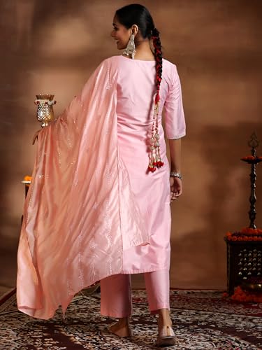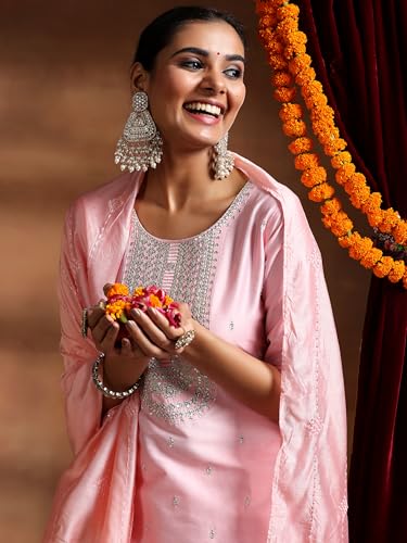 INDO ERA Women's Printed Pure Cotton Calf Length Straight Kurta Pant With Dupatta Set (Kh0Cr6165)