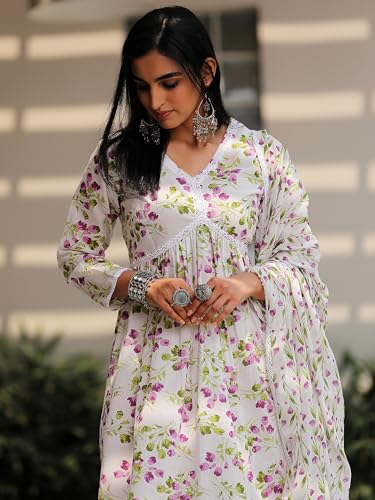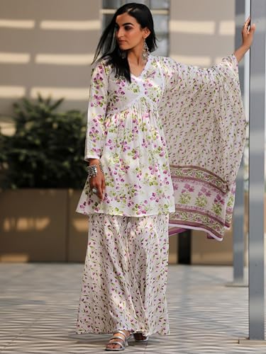 Libas Pink Yoke Design Silk Blend Straight Kurta With Trousers & Dupatta