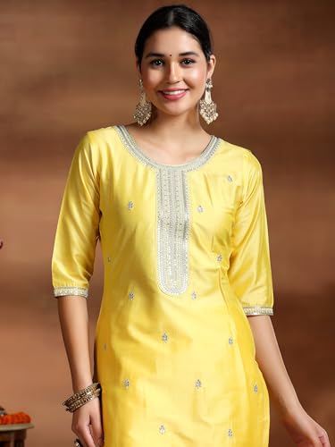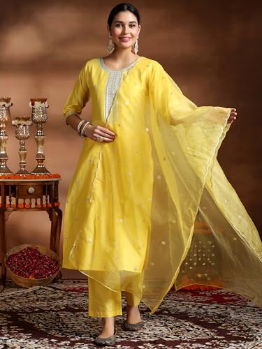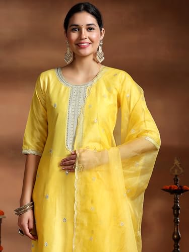 Miss Ethnik Women's Black Faux Georgette Straight Kurta Palazzo & Dupatta Set