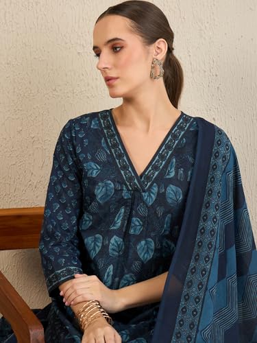 Libas Beige Yoke Design Silk Blend Straight Kurta With Trousers & Dupatta