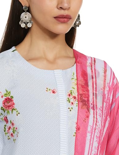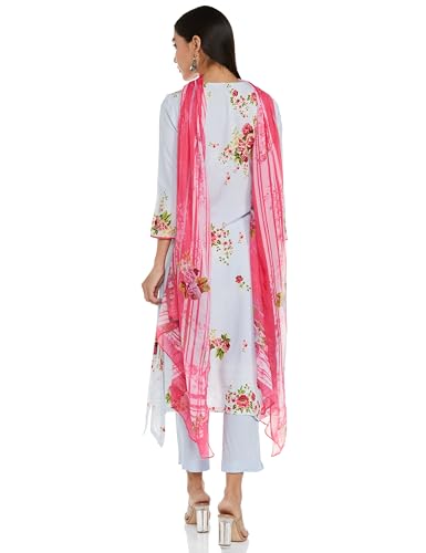 Janasya Women's Plus Size Dark Blue Georgette Kurta With Palazzo and Dupatta