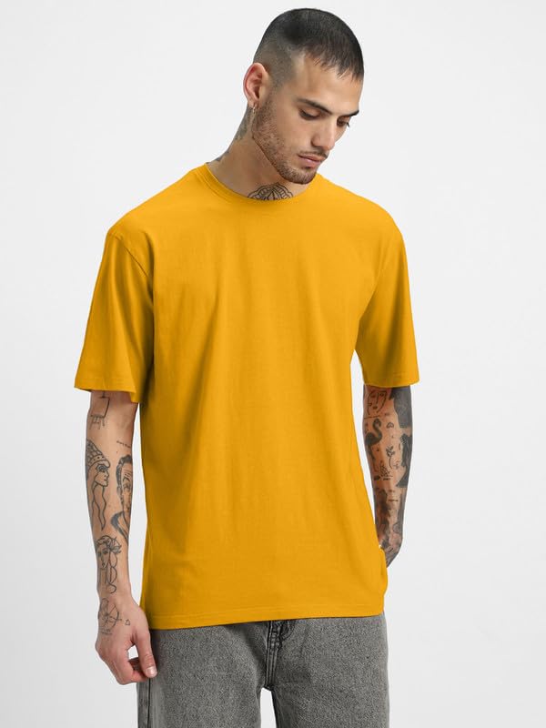 Bewakoof Men's Black Hangin Astronaut Graphic Printed Oversized Half Sleeve Crew Neck Cotton T-Shirt