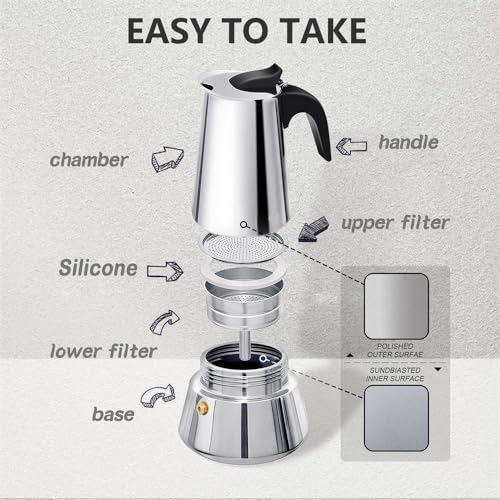 Stainless Steel Coffee Pot Portable Moka Espresso Maker Electric Heating Mocha Pot Home 2/4/6/9 Cup(100ml)