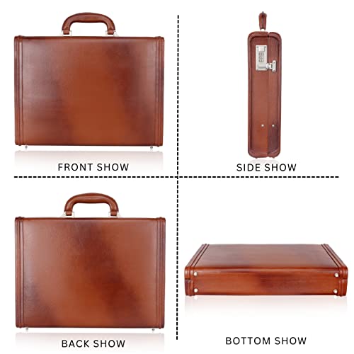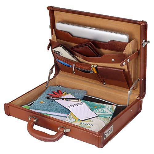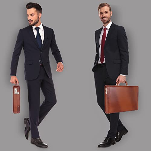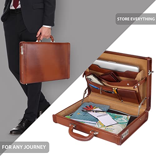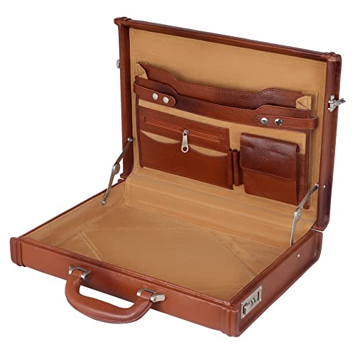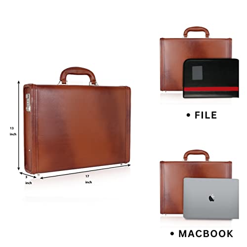 KLAUSS Leather Expandable Briefcase for Men - Genuine Leather Attachi Suitcase with Combination Lock - Office and Business Hand Bag - Executive Laptop Briefcase - Classic Brown, 43 x 10.5 x 32cm